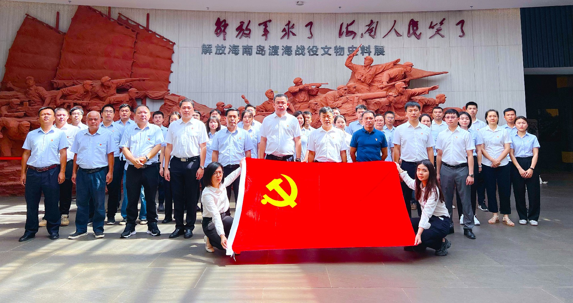 走進解放海南渡海戰役紀念館,全體人員逐一觀看了館內“揮師南下”“厲兵秣馬”“碧海丹心”“決戰瓊島”“人民勝利”五大部分。紀念館內的圖片、實物及視頻展,讓大家更加直觀地感受革命先烈為了解放海南,拋頭顱、灑熱血的戰斗情景,無不為共產黨人解放海南島的攻堅克難及不怕犧牲、勇于戰斗的革命精神所感動。初心永志不忘,使命催人奮進。
